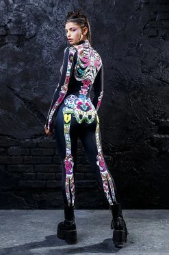 The design features a body con fit with long sleeves, a mock neckline and a sturdy zipper neatly hidden in the back. Rock it on Halloween Eve or ur next festival of choice and stand owt in the crowd.