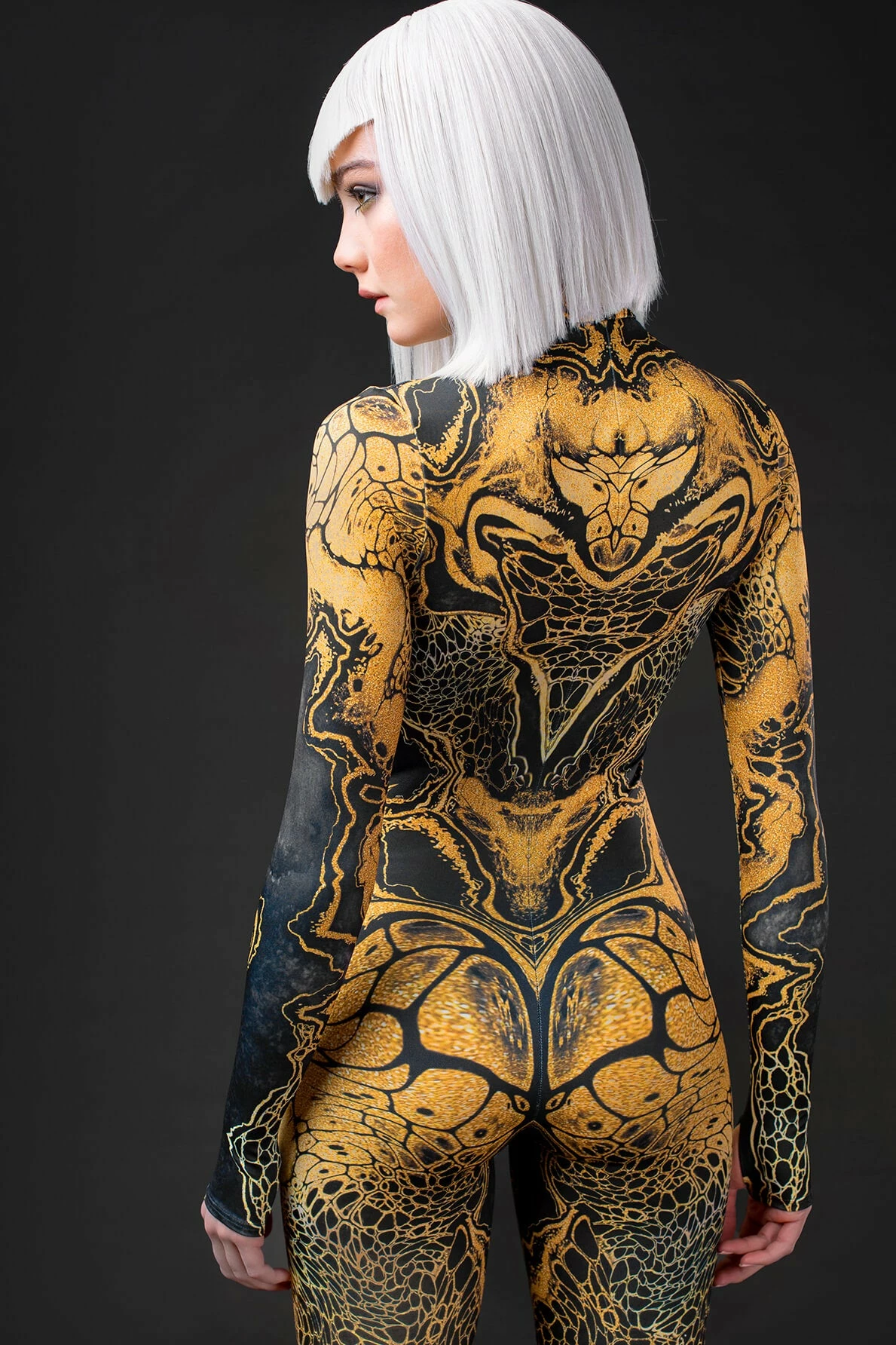 A brilliant combination of black and gold for a look that is both elegant and avant-garde.