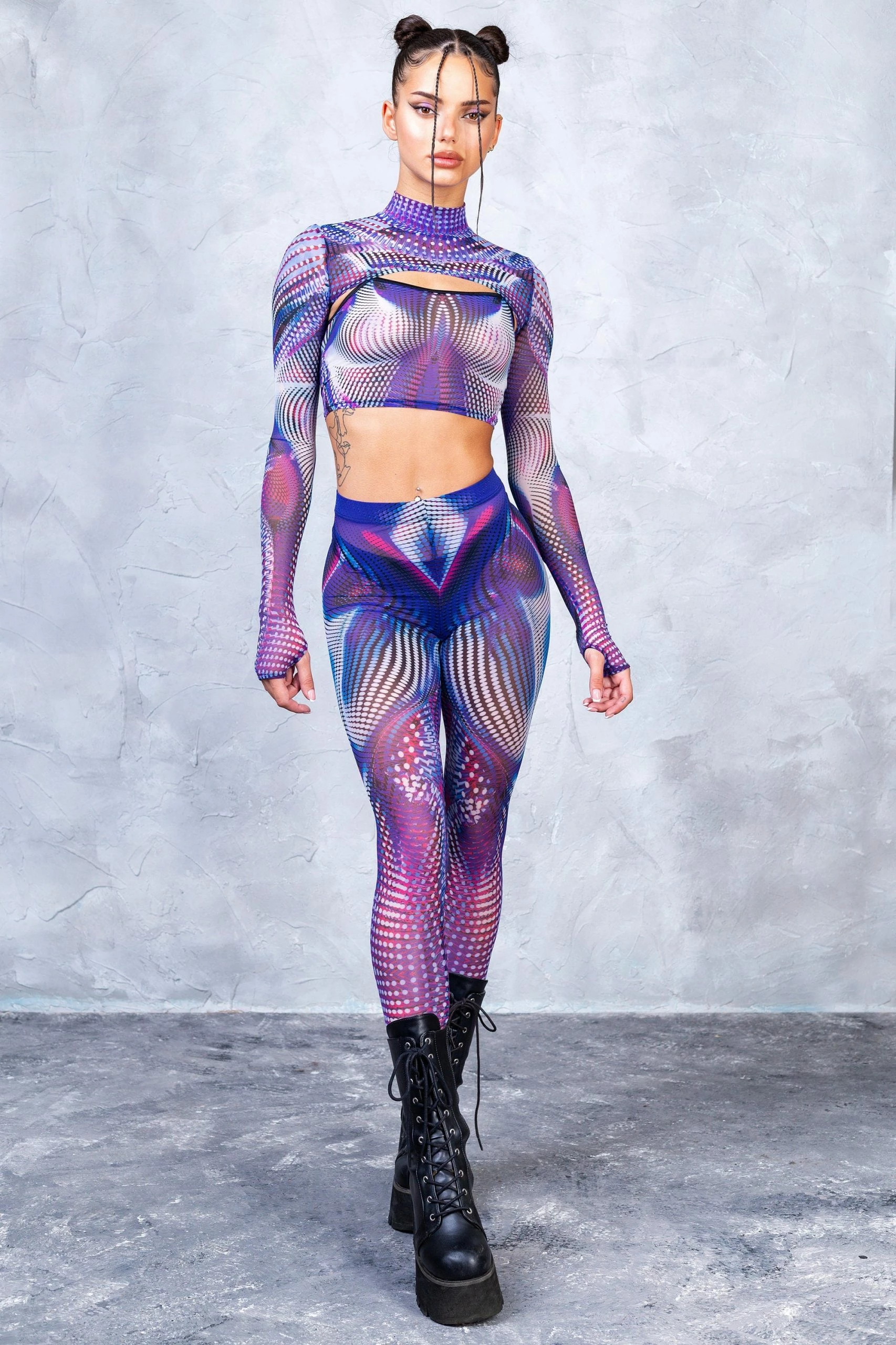 The Fata Morgana leggings are a festie must have. Pair with the matching 2-Piece Shrug Top for a finished trippy lewk.