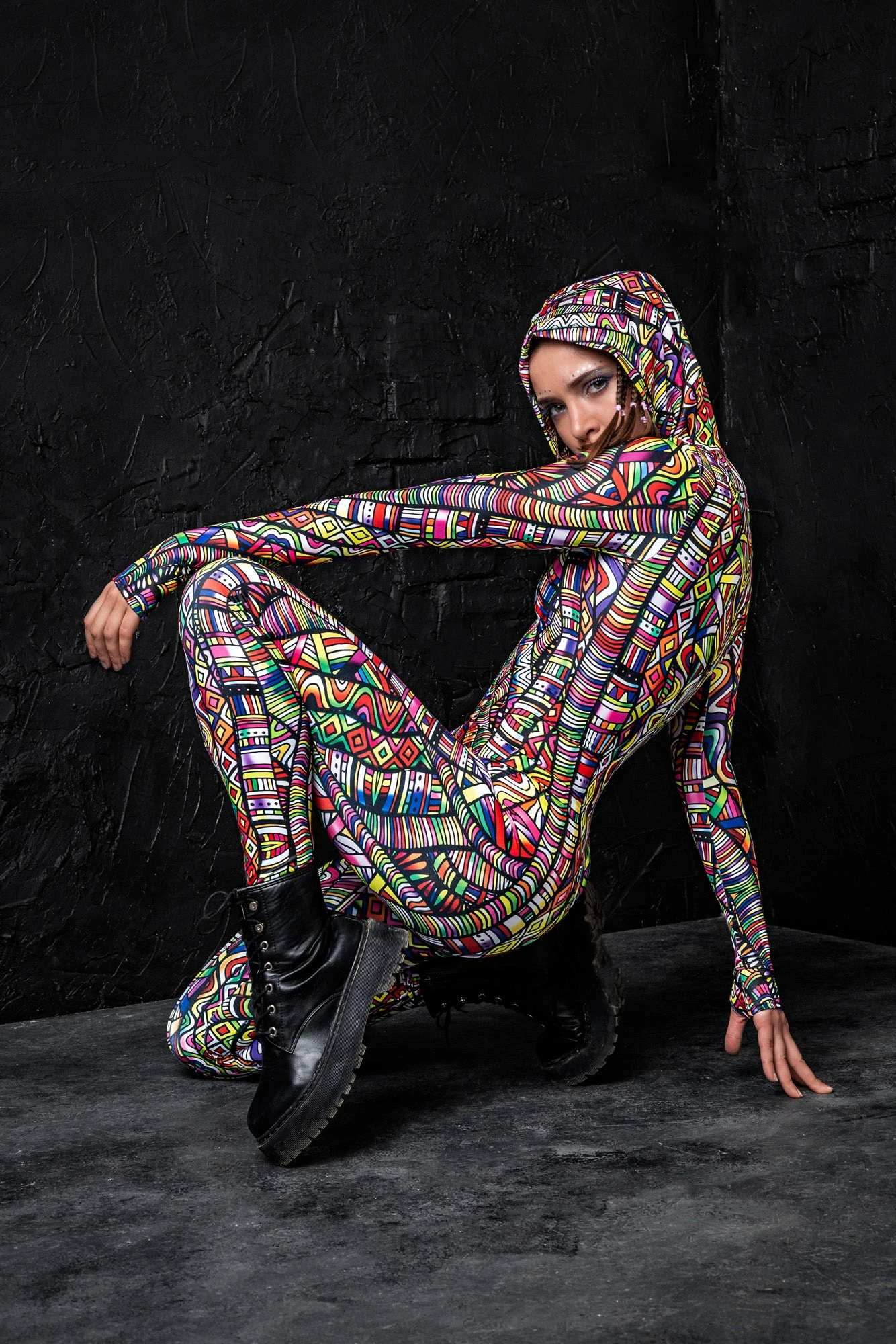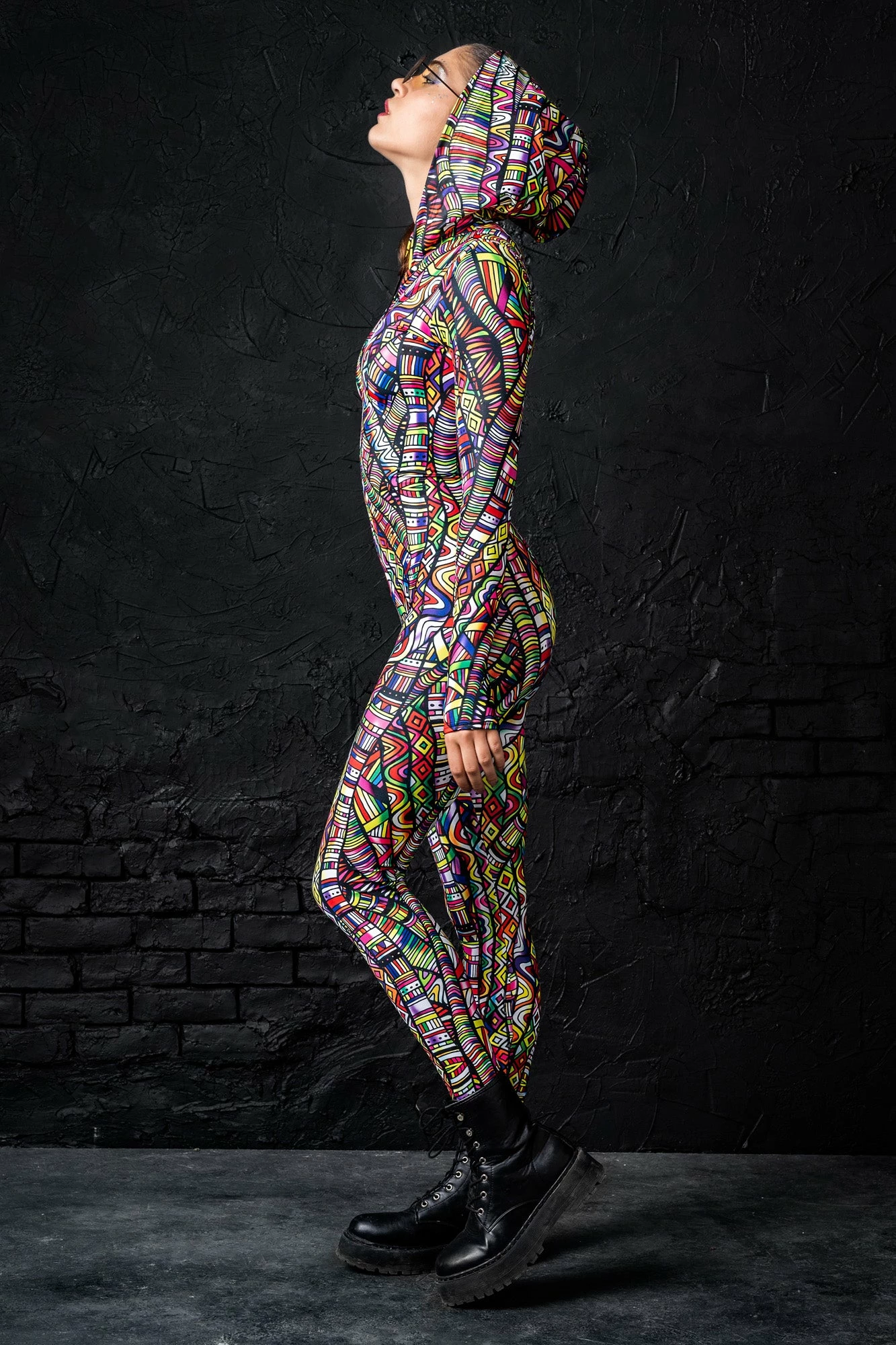 This piece is made from a high quality stretchy and breathable Lycra fabric, that feels wonderful on the skin. Itβs printed with outstanding graphics that react to UV light, so you can literally glow.