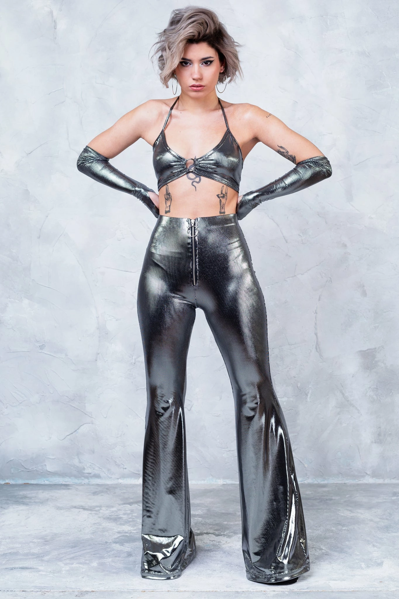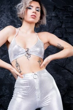 This triangle top is a dream. It has a cute o-ring detail and halter neck. Pair with the Monochrome Bell Bottom Pants for a finished look.