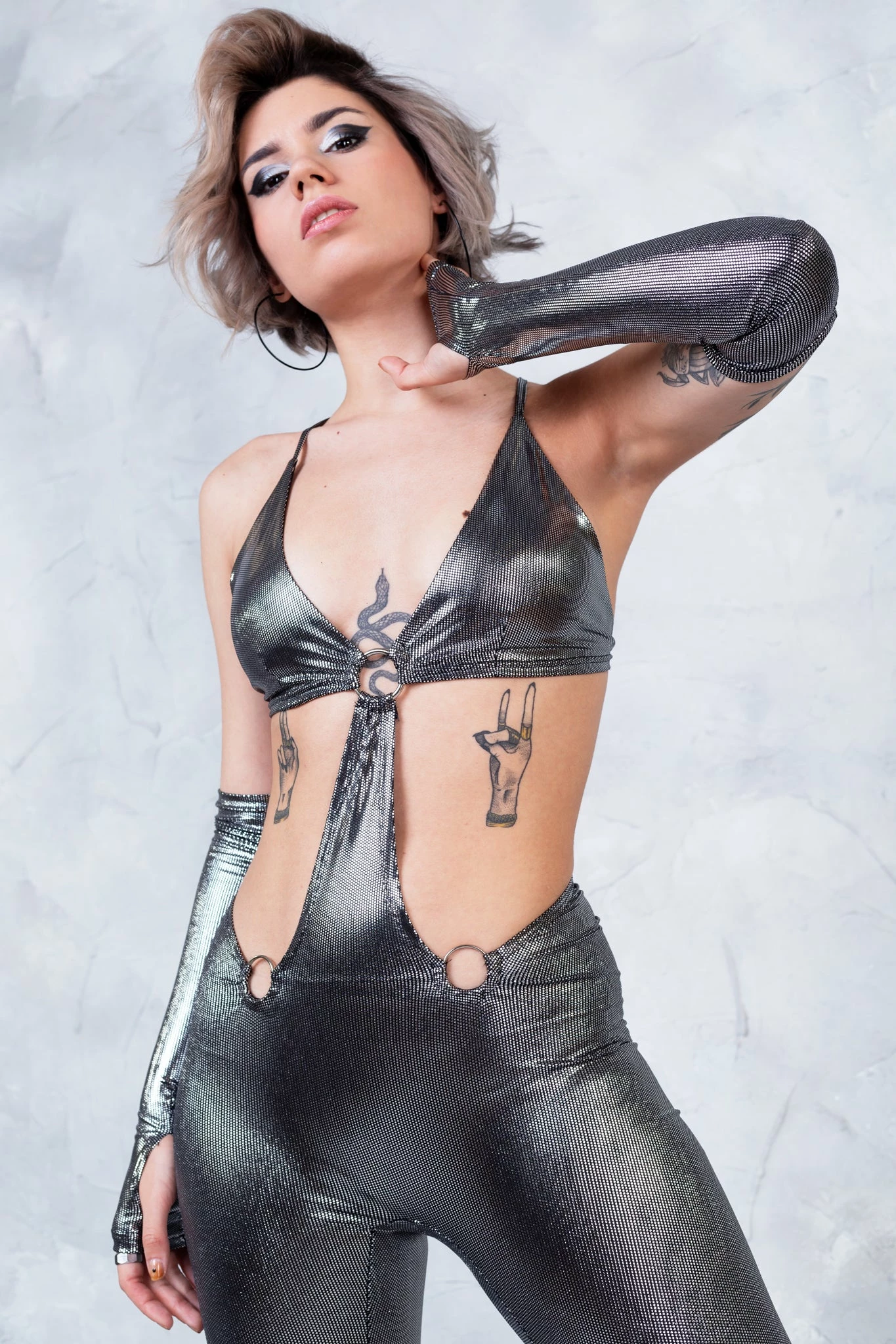 Donβt follow trendz, set βem. Our Monochrome Sassy Ring Catsuit is the perfect choice for the for the bold and brave out there. This sleek design is made from a stretchy and breathable fabric and features long fingerless gloves, a triangle top, long nβ slim bottoms, all connected with o-ring detailz. Perfect for the long nights and morning afters.