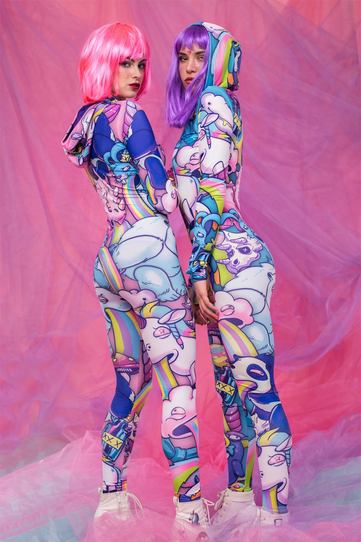 The design features a body con fit, long sleeves with thumbholes, a mock neckline, a hood for xxtra badassery and a sturdy zipper neatly hidden in the front.