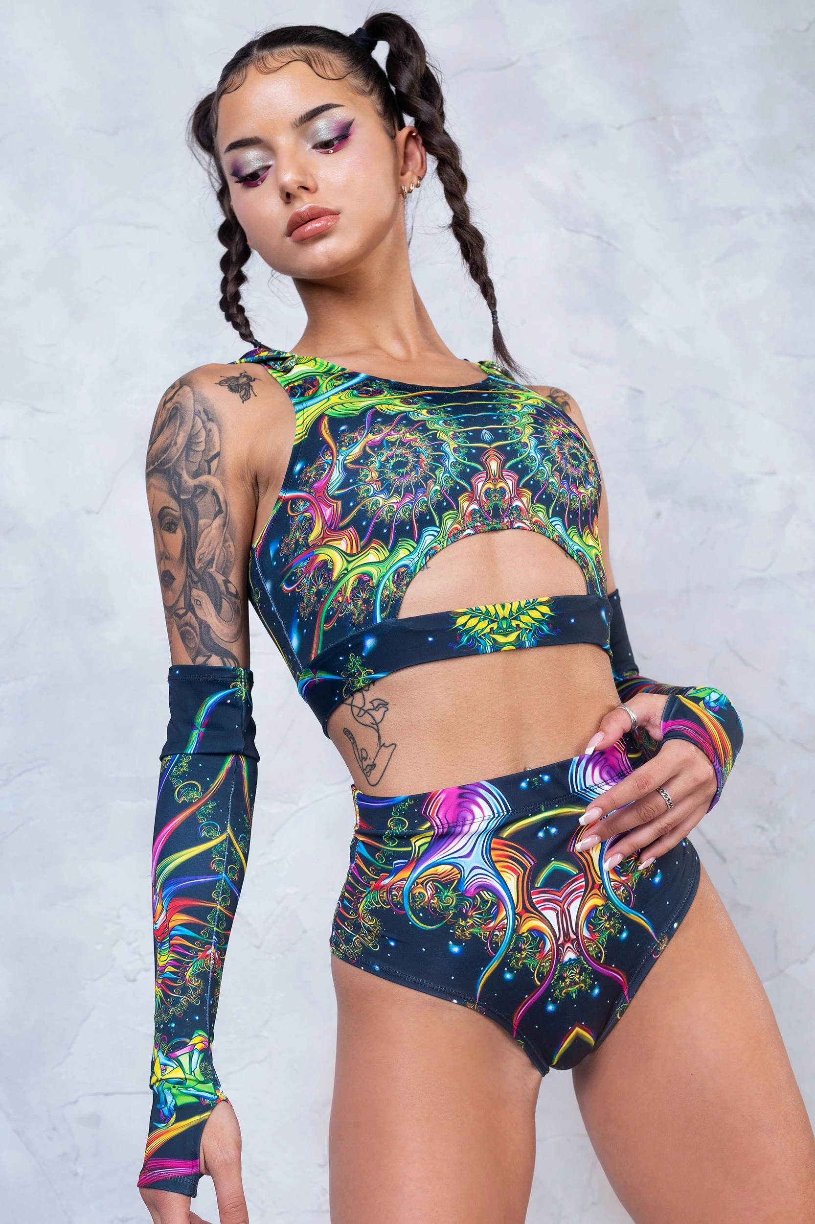 Become one with the universe in our Synergy Long Belt Hooded Set.