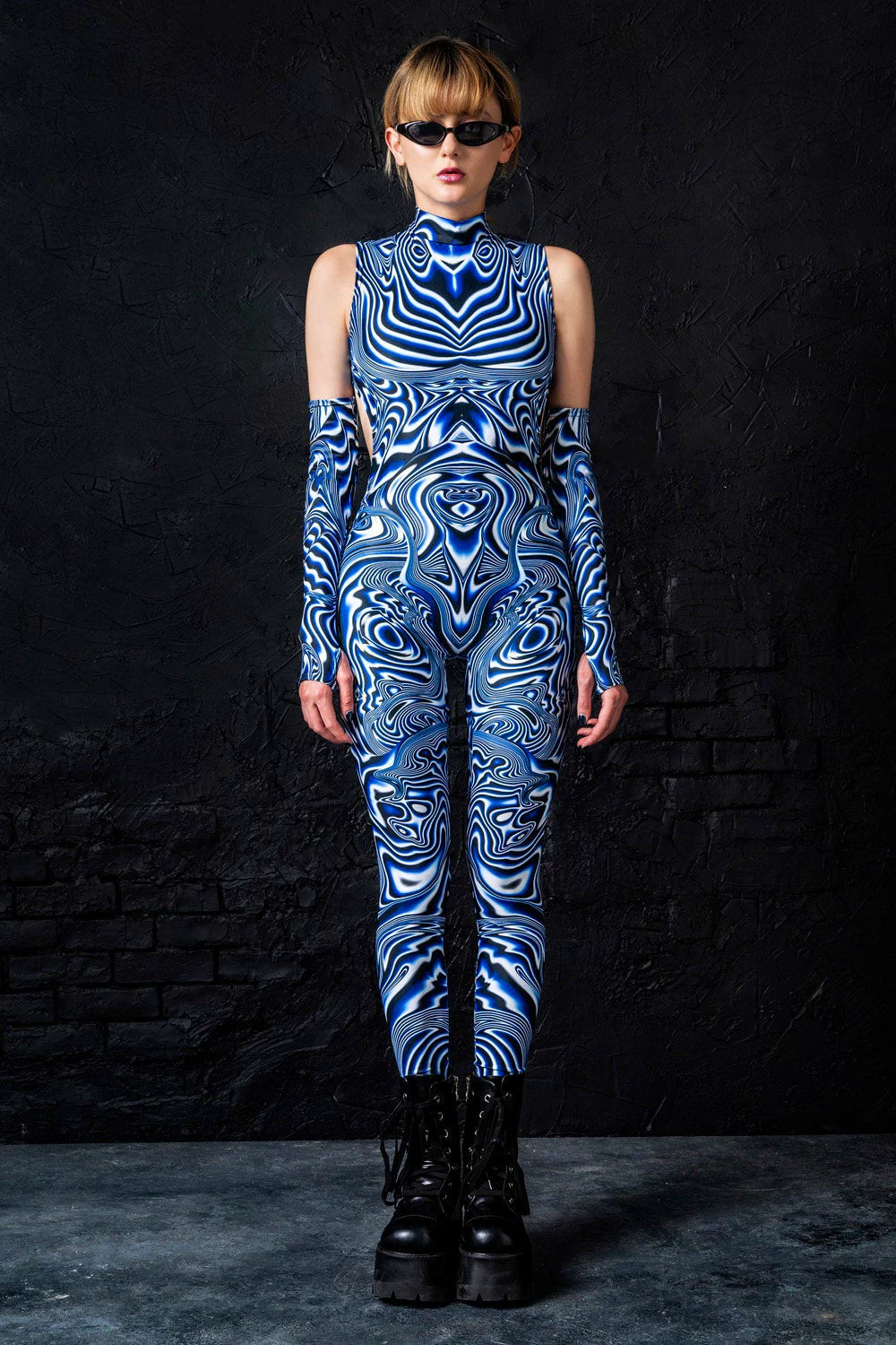 This piece is made from a high quality stretchy and breathable Lycra fabric, that feels wonderful on the skin. It’s printed with outstanding graphics that react to UV light, so you can literally glow.