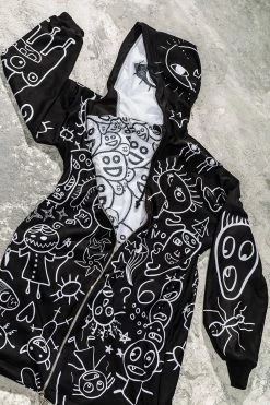 Attention grabber stuff inspired by Die Antwoord’s art. You are sorry not sorry in this comfy hoodie that have doodle print all over.