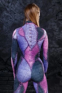 This ultra sleek Halloween costume fits like a glove and holds everything in place. Its form-fitting construction is flattering and sucks you in. The highest quality lycra fabric is compfy and stretchy and feels luxx on the skin. The bodysuit is warm enough for the Halloween night out, but not too hot for the dance floor!